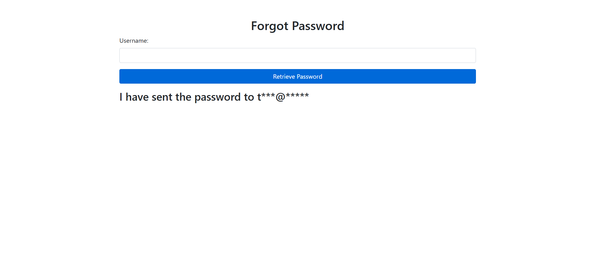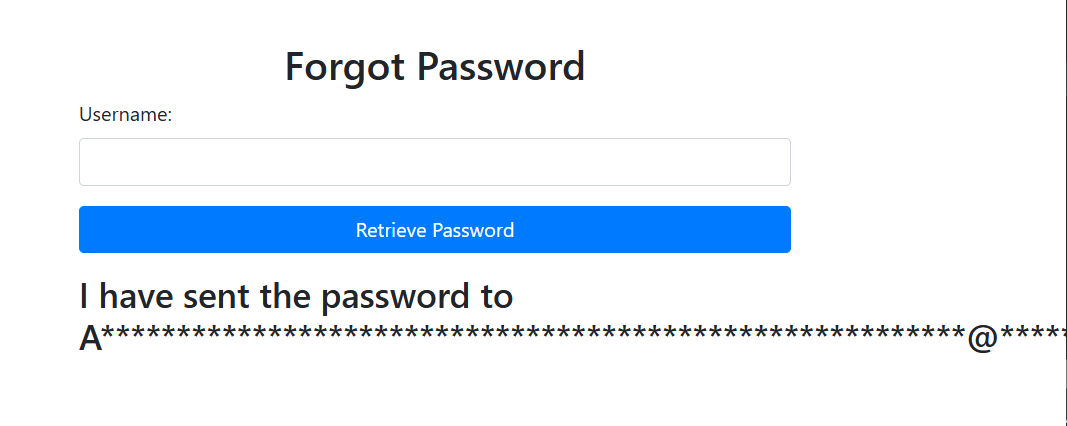 第一個想到的是 admin ,按下 Retrieve Password 發現會顯示 I have sent the password to a****@*********** ,猜測在使用者存在的情況下 @ 前面應該是輸入的使用者名稱